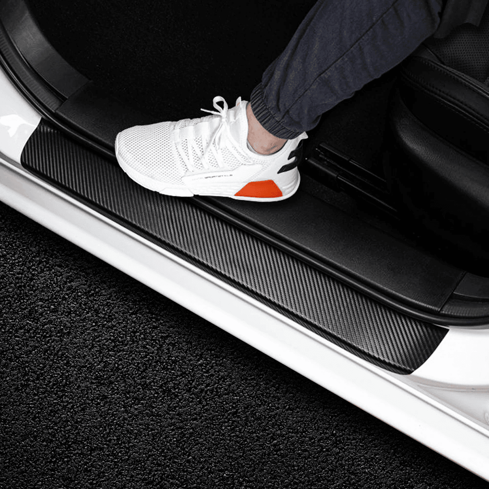 Material de alta qualidade: Adesivo preto de fibra de carbono 4D. A proteção da soleira da porta é feita de filme de vinil com design de textura de fibra de carbono, impermeável e resistente a altas temperaturas. Depois de vários testes em alta temperatura e dias chuvosos, descobrimos que ele não derreteu e não rachou. A alta qualidade é o nosso principal objetivo.